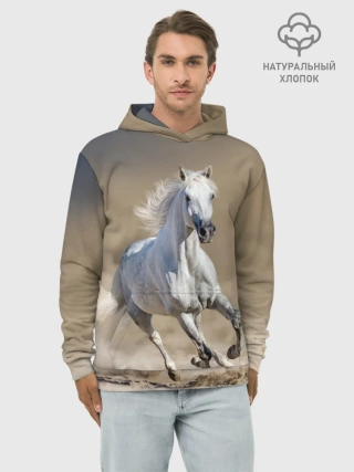 Худи мужской база хлопок / Белый конь