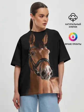 Женская футболка оверсайз / Гнедая лошадь