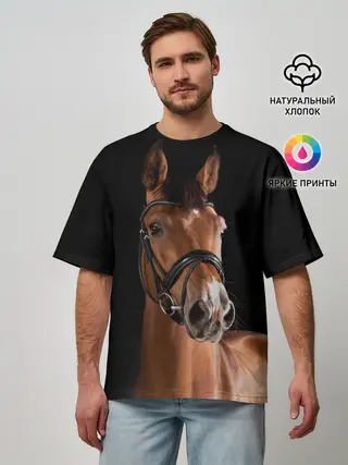 Мужская футболка оверсайз / Гнедая лошадь