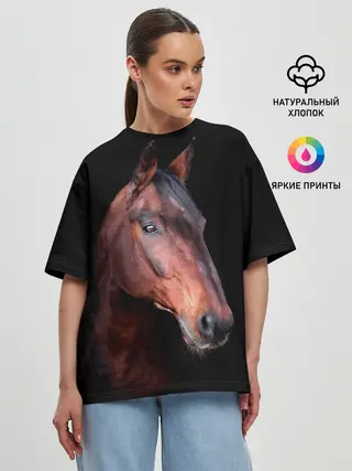 Женская футболка оверсайз / Гнедая лошадь