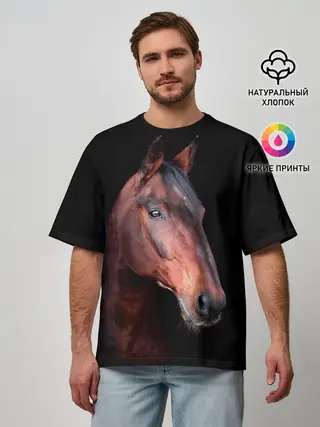 Мужская футболка оверсайз / Гнедая лошадь