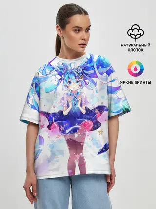 Женская футболка оверсайз / Хацуне Мику на красочном фоне