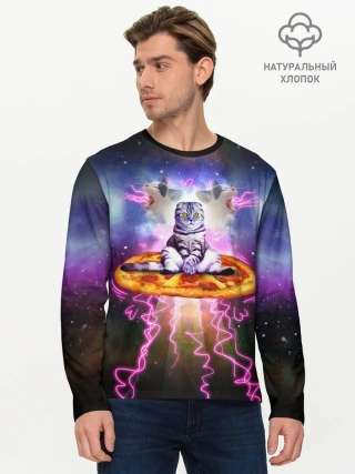 Мужской лонгслив базовый / Кот на пицце