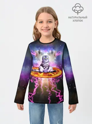 Детский лонгслив / Кот на пицце