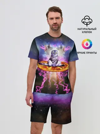 Мужской костюм с шортами / Кот на пицце