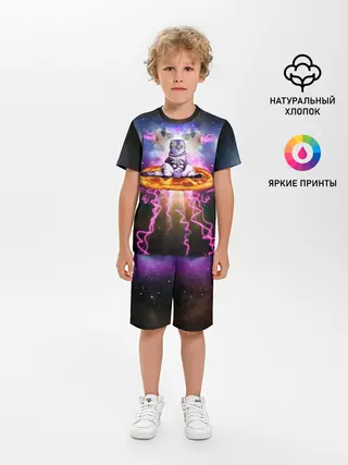Детская пижама с шортами / Кот на пицце