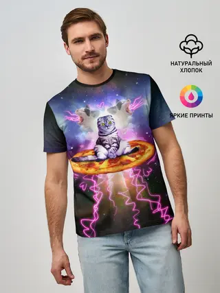 Мужская футболка оверсайз / Кот на пицце