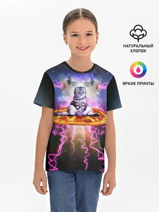 Детская базовая футболка / Кот на пицце