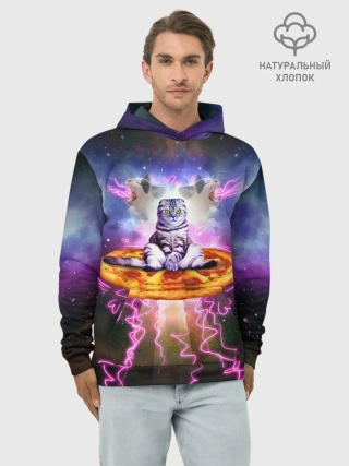 Худи мужской база хлопок / Кот на пицце