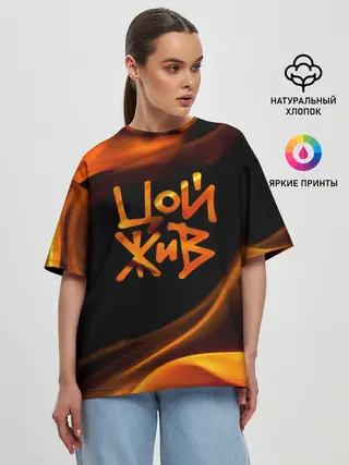 Женская футболка оверсайз / Цой жив