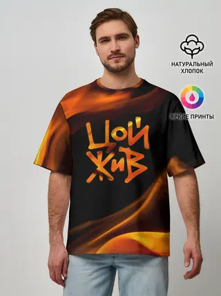 Мужская футболка оверсайз / Цой жив