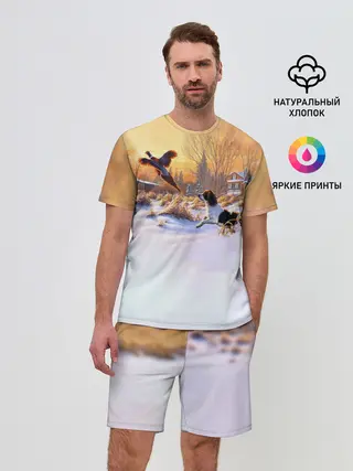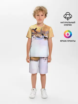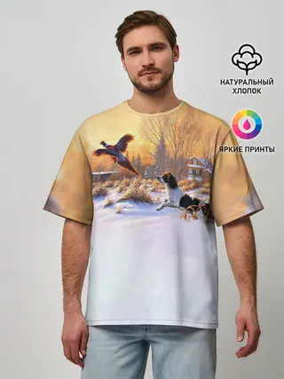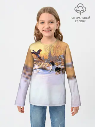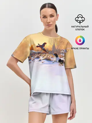 Лонгслив женский. Хлопок / Лоси в дубовом лесу