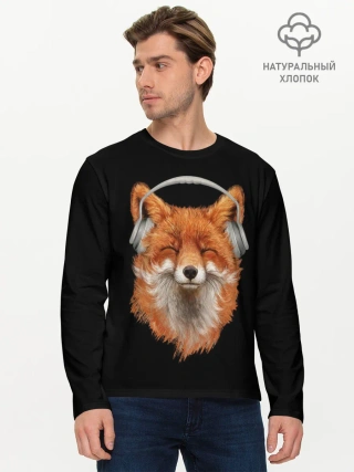 Мужской лонгслив базовый / Лиса в наушниках