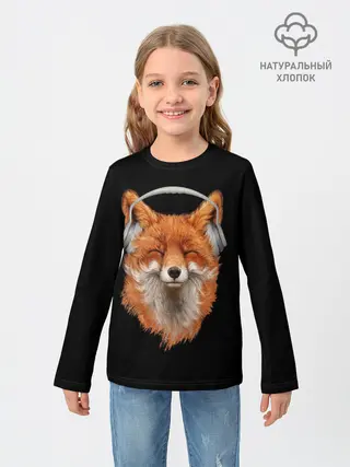 Детский лонгслив / Лиса в наушниках