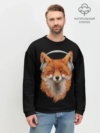 Мужской свитшот базовый / Лиса в наушниках