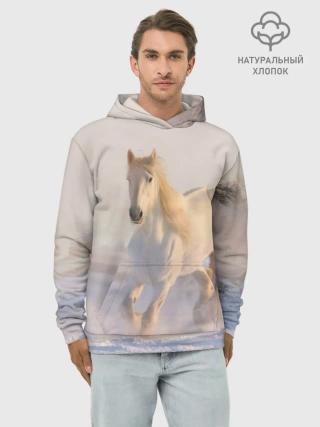 Мужской лонгслив базовый / Белая лошадь на снегу
