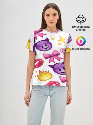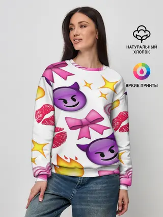 Лонгслив женский. Хлопок / Очень много эмодзи