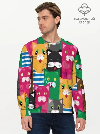 Мужской лонгслив базовый / Голодные котики.