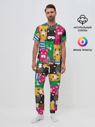 Мужская пижама с брюками / Голодные котики.