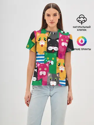 Женская базовая футболка / Голодные котики.