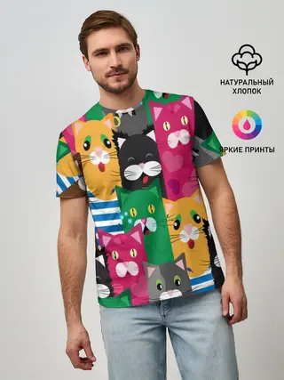 Мужская футболка оверсайз / Голодные котики.