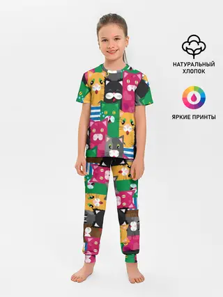 Детская пижама с брюками / Голодные котики.