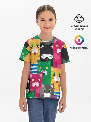 Детская базовая футболка / Голодные котики.