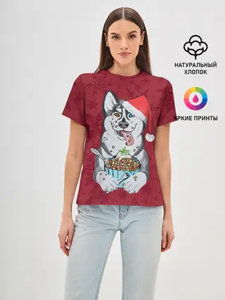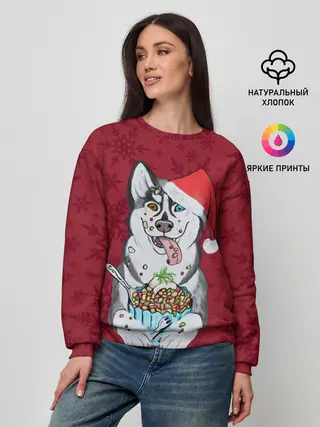 Лонгслив женский. Хлопок / Джоконда новогодняя