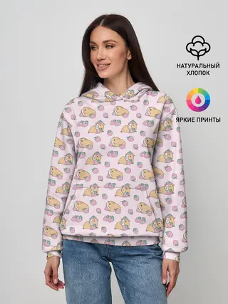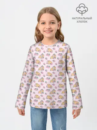 Лонгслив женский. Хлопок / Морские свинки с клубникой