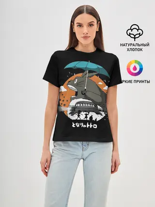 Женская футболка оверсайз / Тоторо ест облака
