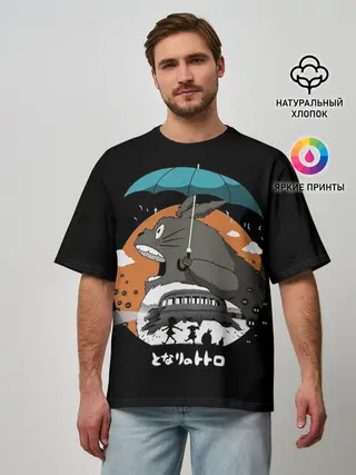 Мужская футболка оверсайз / Тоторо ест облака