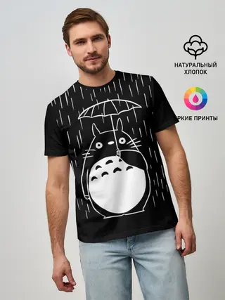 Мужская футболка оверсайз / Тоторо прячется от дождя