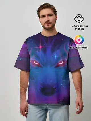 Мужская футболка оверсайз / Звездный волк