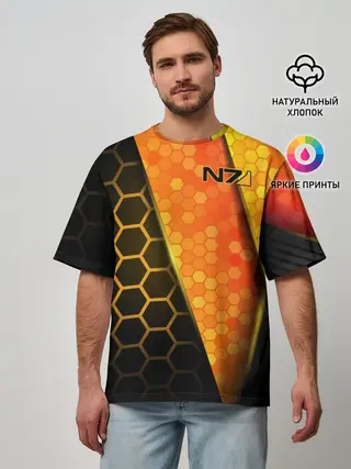 Мужская футболка оверсайз / Mass Effect N7