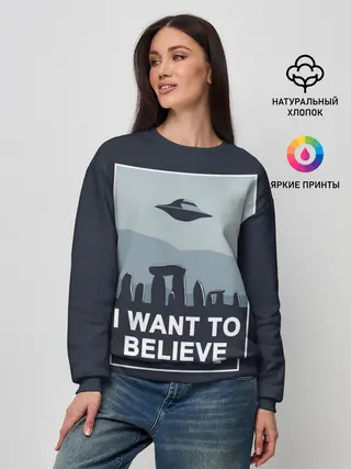 Лонгслив женский. Хлопок / НЛО похищение коров