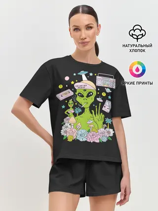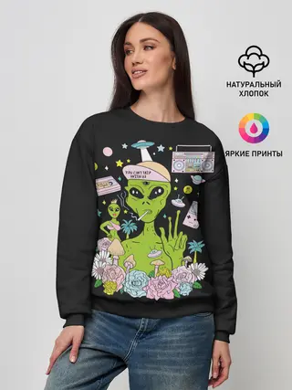 Лонгслив женский. Хлопок / НЛО похищение коров