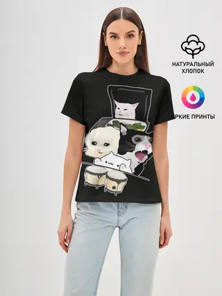 Женская футболка оверсайз / woman yelling at cat