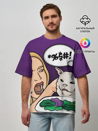 Мужская футболка оверсайз / Woman yelling at a cat