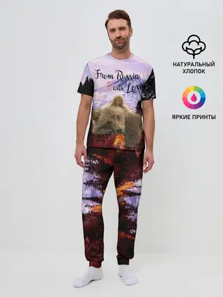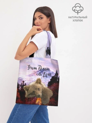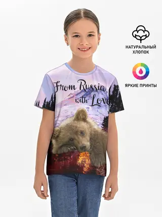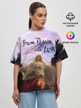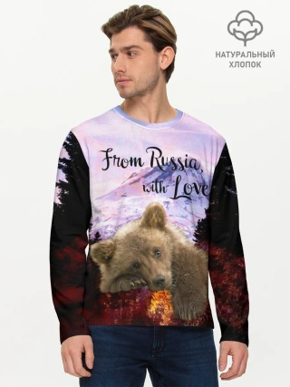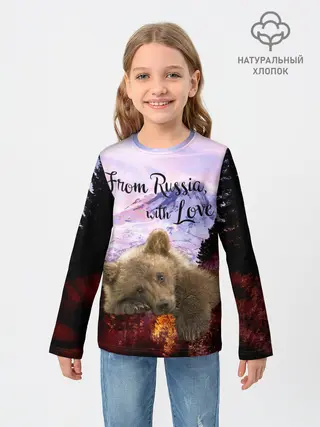 Лонгслив женский. Хлопок / Мишка с балалайкой