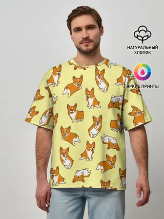 Мужская футболка оверсайз / Корги