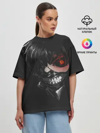 Лонгслив женский. Хлопок / Ken Kaneki смотрит в даль