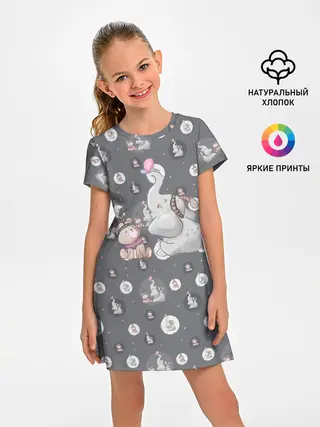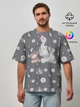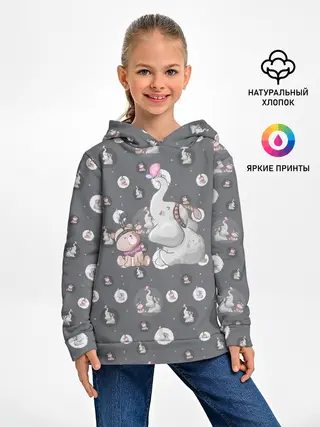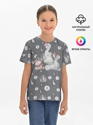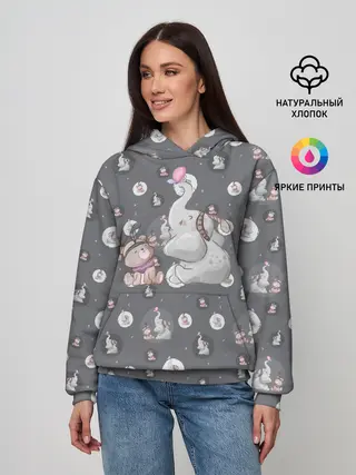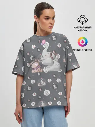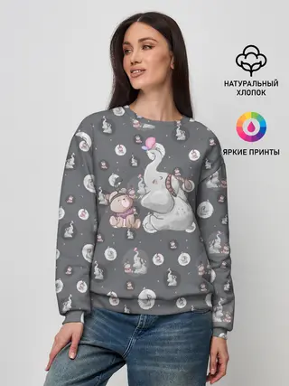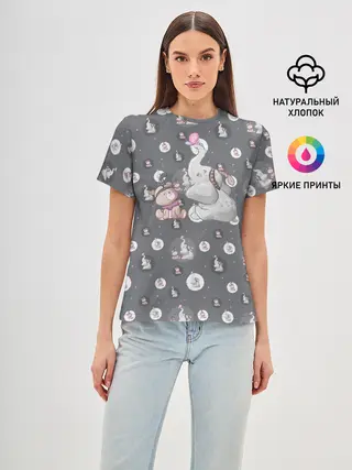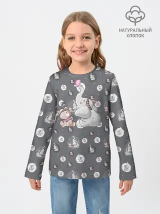 Лонгслив женский. Хлопок / Слоны | Узоры