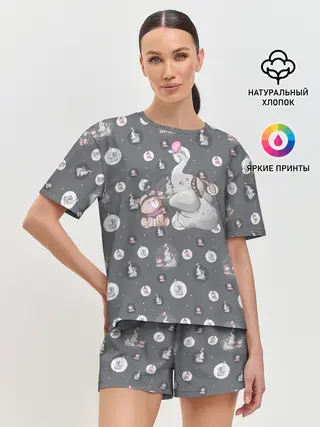 Лонгслив женский. Хлопок / РОЗОВЫЕ СЛОНИКИ ПАТТЕРН