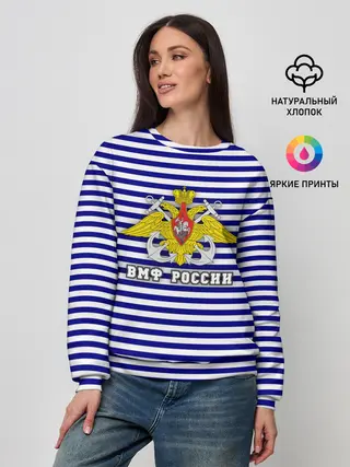 Лонгслив женский. Хлопок / Тельняшка ВМФ