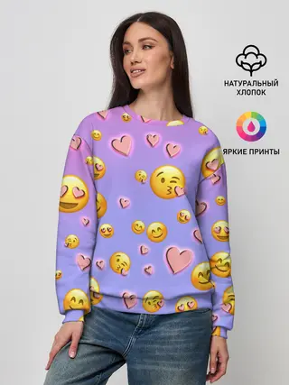Лонгслив женский. Хлопок / Очень много эмодзи