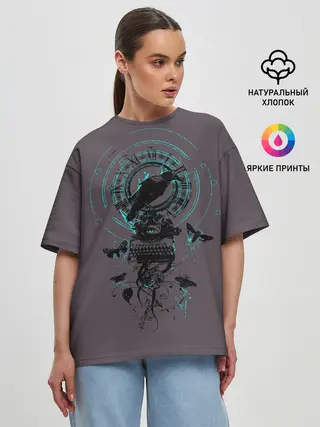Женская футболка оверсайз / Черный ворон