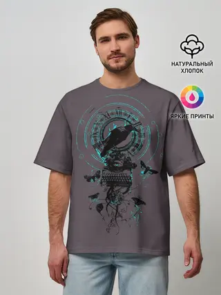 Мужская футболка оверсайз / Черный ворон