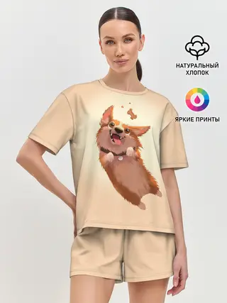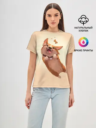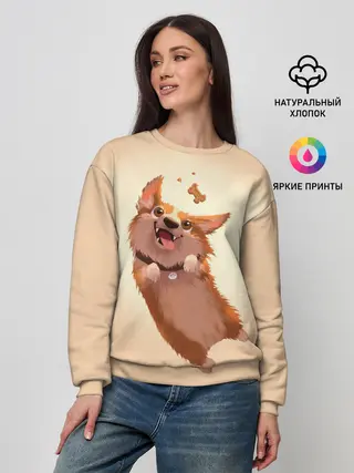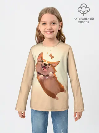 Лонгслив женский. Хлопок / Вельш Корги Пемброк