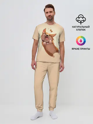 Лонгслив женский. Хлопок / Корги Паттерн 2