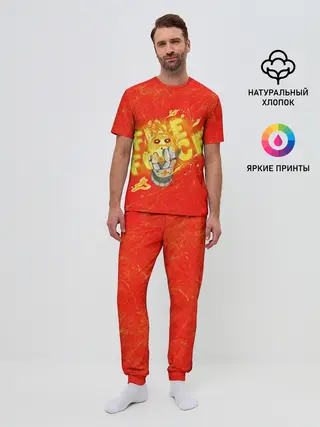 Мужская пижама с брюками / пламенная бригада пожарных красный фон